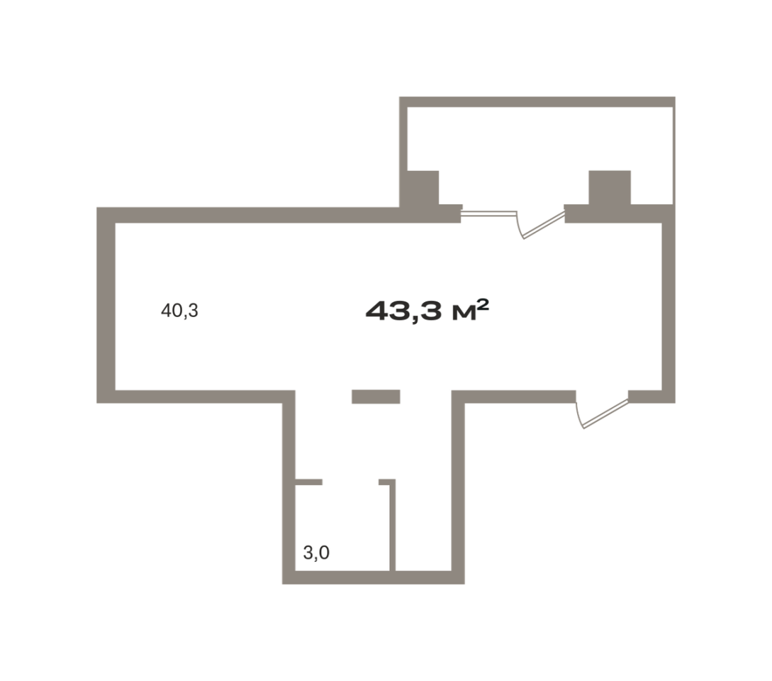 Общая площадь 43.3 м2