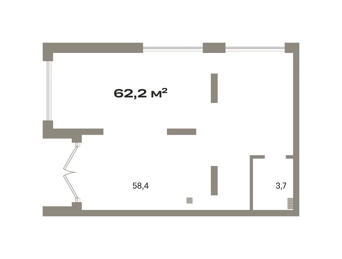 Общая площадь 62.2 м2