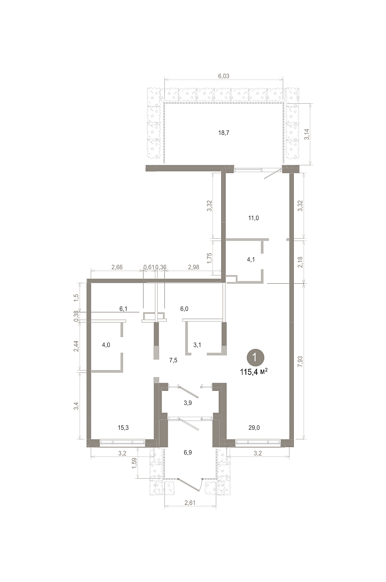 Площадь (общ/жил/кух), м2: 115.04/29.49/25.83