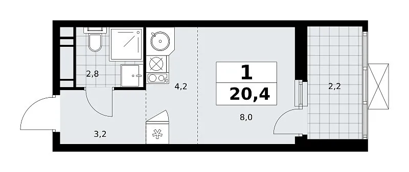Площадь (общ/жил/кух), м2: 20.6/—/4.2