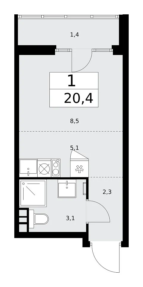 Площадь (общ/жил/кух), м2: 28.1/—/6.3