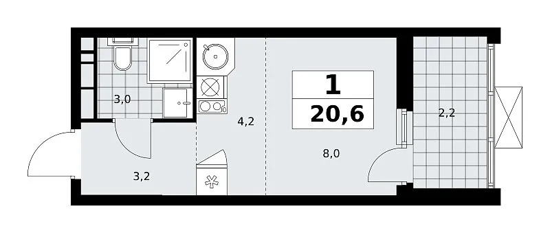 Площадь (общ/жил/кух), м2: 20.6/—/4.2