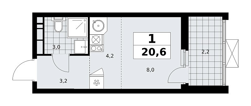 Площадь (общ/жил/кух), м2: 25.9/—/4.2
