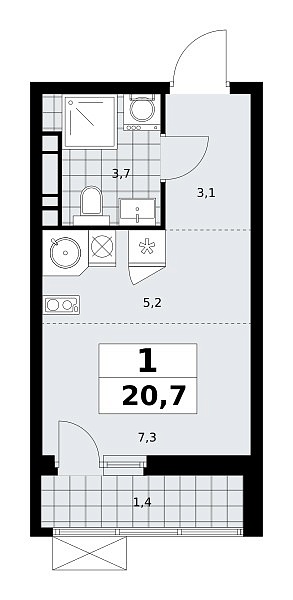Площадь (общ/жил/кух), м2: 20.7/—/5.2