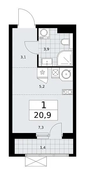 Количество комнат: 1, 20.9 кв.м.