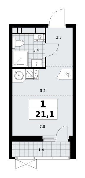 Площадь (общ/жил/кух), м2: 20.7/—/4.2