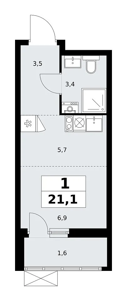 Площадь (общ/жил/кух), м2: 24.1/—/4.5