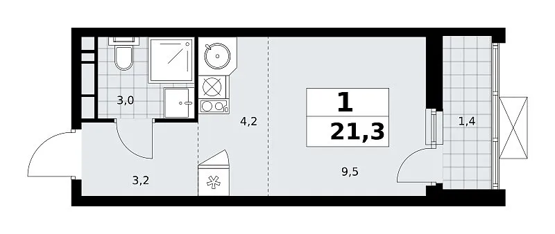 Площадь (общ/жил/кух), м2: 20.6/—/4.2