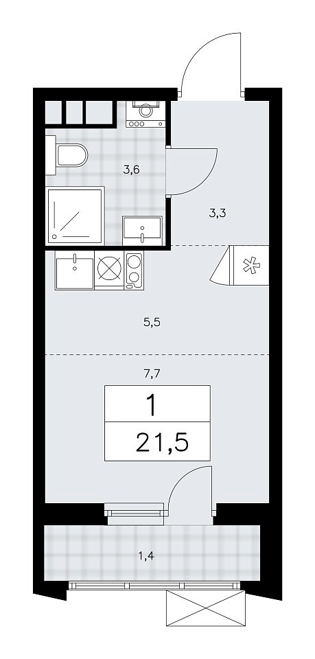 Общая площадь 21.4 м2