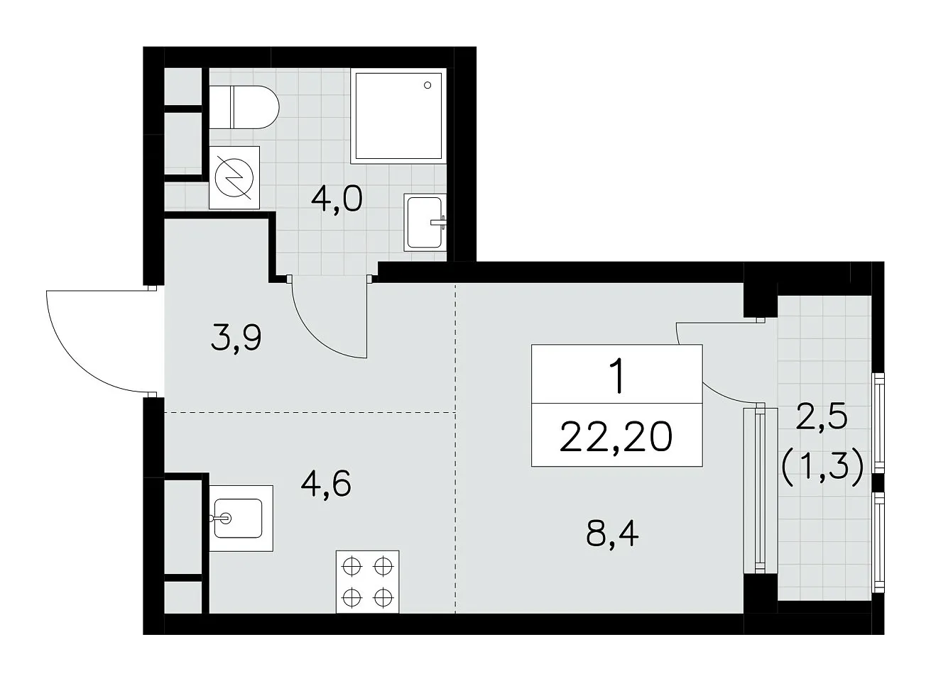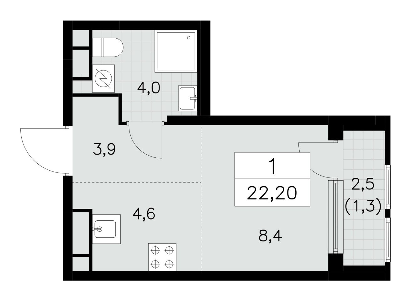 Площадь (общ/жил/кух), м2: 22.2/—/4.6