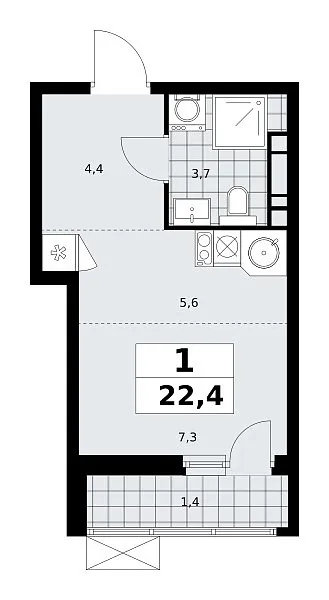 Количество комнат: 1, 22.4 кв.м.