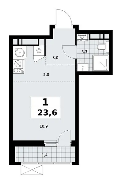Площадь (общ/жил/кух), м2: 23.6/—/5