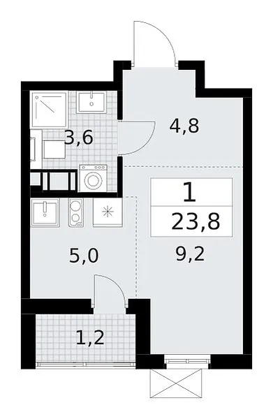 Количество комнат: 1, 23.8 кв.м.