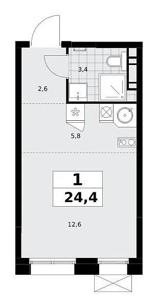 Площадь (общ/жил/кух), м2: 24.3/—/6.1
