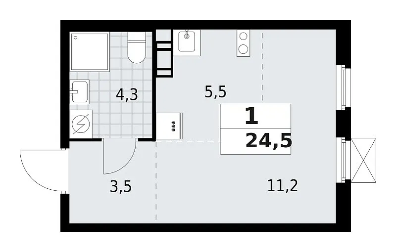 Площадь (общ/жил/кух), м2: 24.5/—/5.5