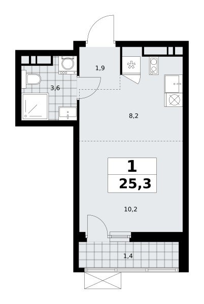 Площадь (общ/жил/кух), м2: 25.6/—/8.4