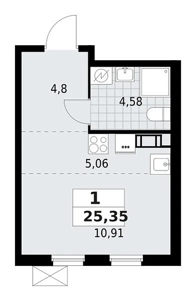 Площадь (общ/жил/кух), м2: 25.35/—/5.06