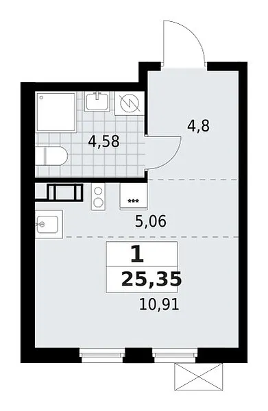 Количество комнат: 1, 25.35 кв.м.