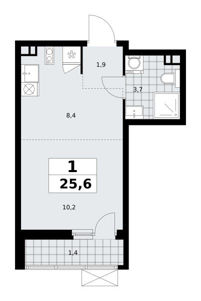 Площадь (общ/жил/кух), м2: 25.3/—/8.2