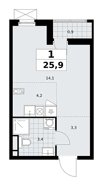 Площадь (общ/жил/кух), м2: 25.9/—/4.2