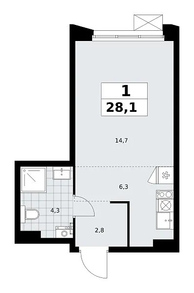 Площадь (общ/жил/кух), м2: 28.1/—/6.3