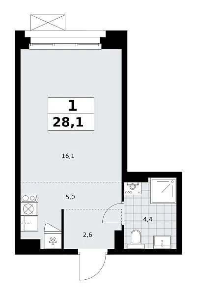 Площадь (общ/жил/кух), м2: 28.1/—/5
