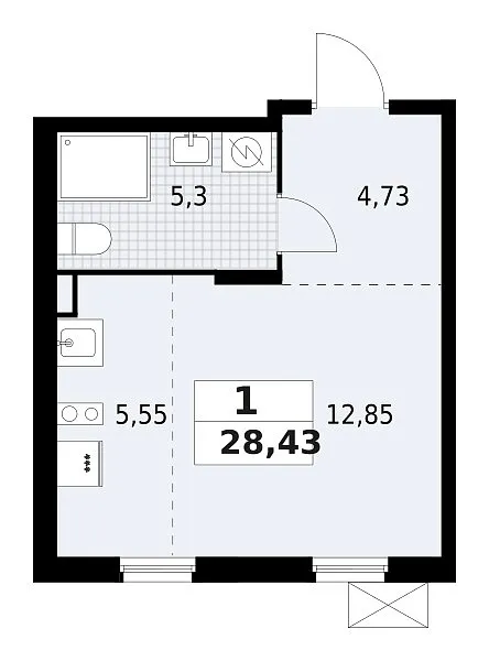 Количество комнат: 1, 28.43 кв.м.