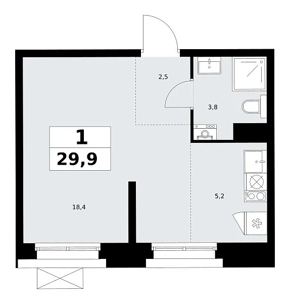 Количество комнат: 1, 29.9 кв.м.