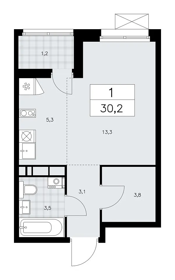 Количество комнат: 1, 30.2 кв.м.