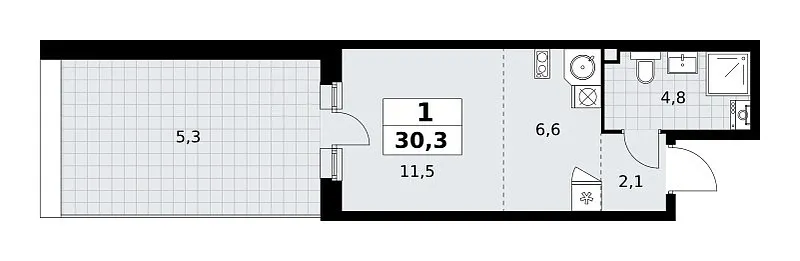 Общая площадь 30.3 м2