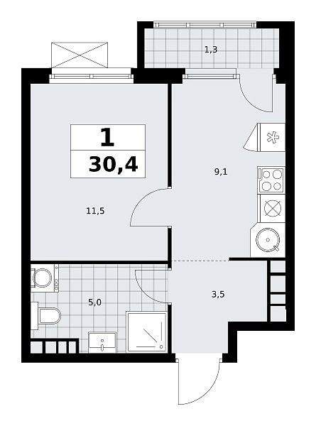 Количество комнат: 1, 30.4 кв.м.