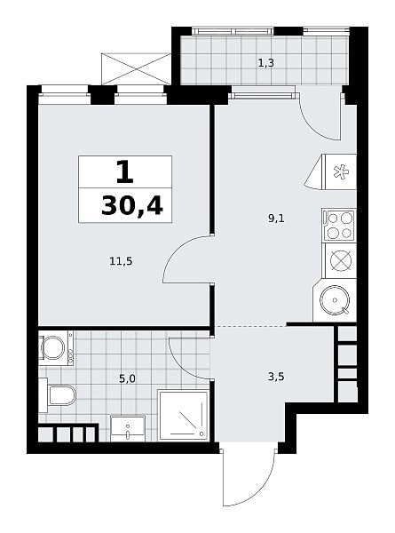 Количество комнат: 1, 30.4 кв.м.