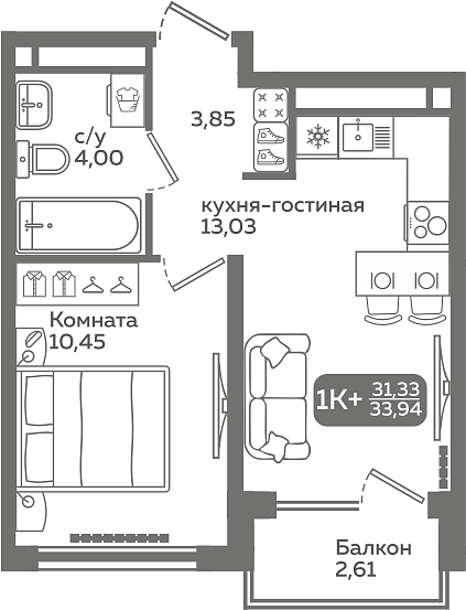 Общая площадь 31.33 м2