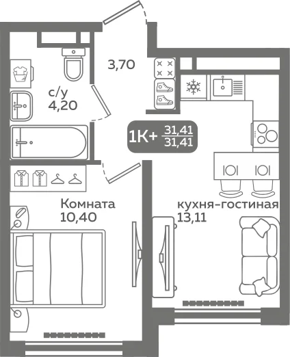 Купить новую однокомнатную квартиру 31.41 м² на 14/21 этаже в ЖК «Меридиан Слобода», г. Тюмень за 4880400 ₽ | Агентство недвижимости «Вплюсе.Топ» — Недвижимость России