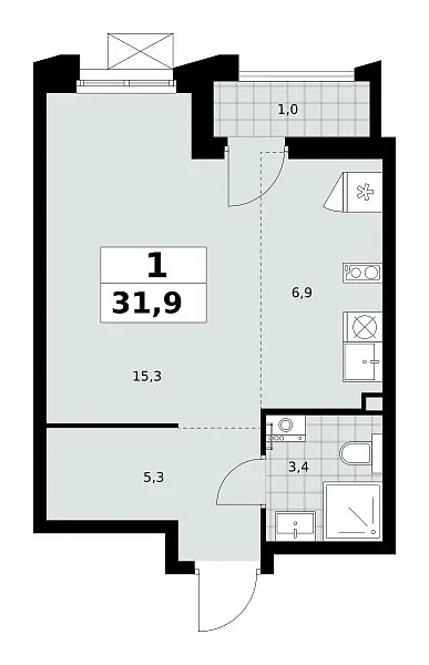 Площадь (общ/жил/кух), м2: 31.5/—/6.5