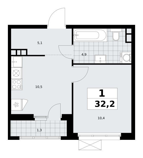 Площадь (общ/жил/кух), м2: 32.1/—/10.5