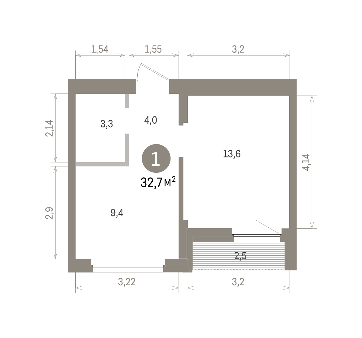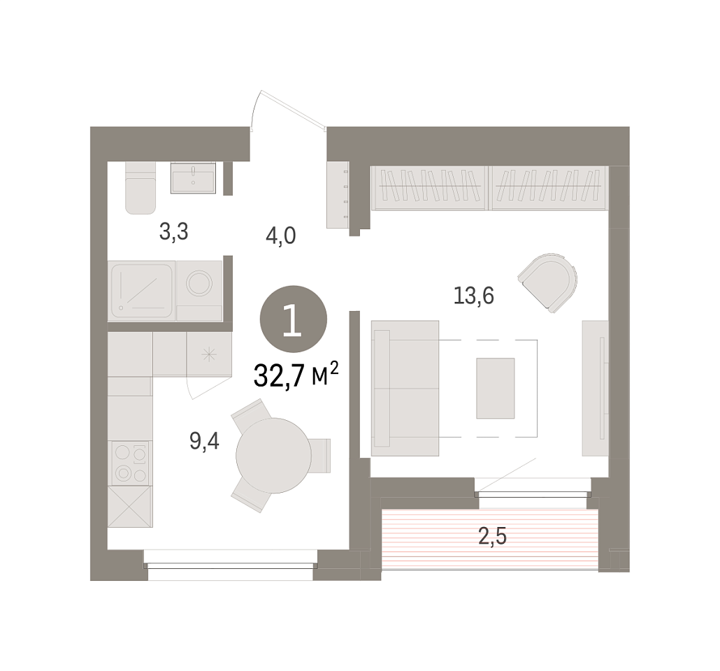 Количество комнат: 1, 32.51 кв.м.