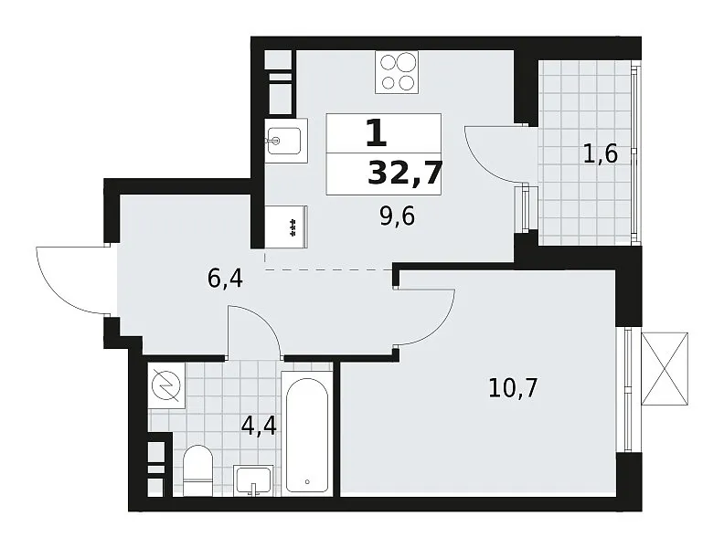 Площадь (общ/жил/кух), м2: 33.1/—/10.7