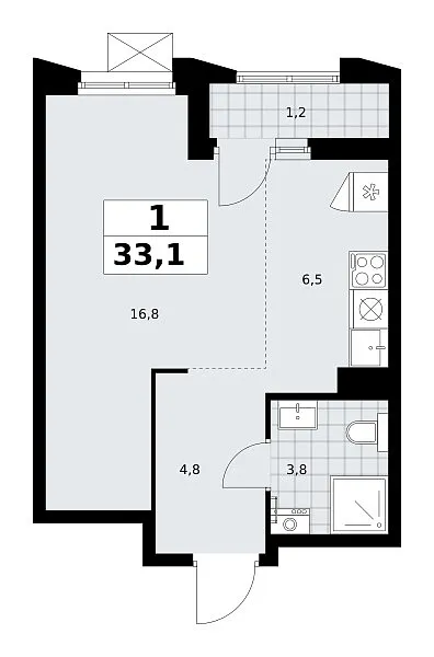 Площадь (общ/жил/кух), м2: 33.1/—/6.5