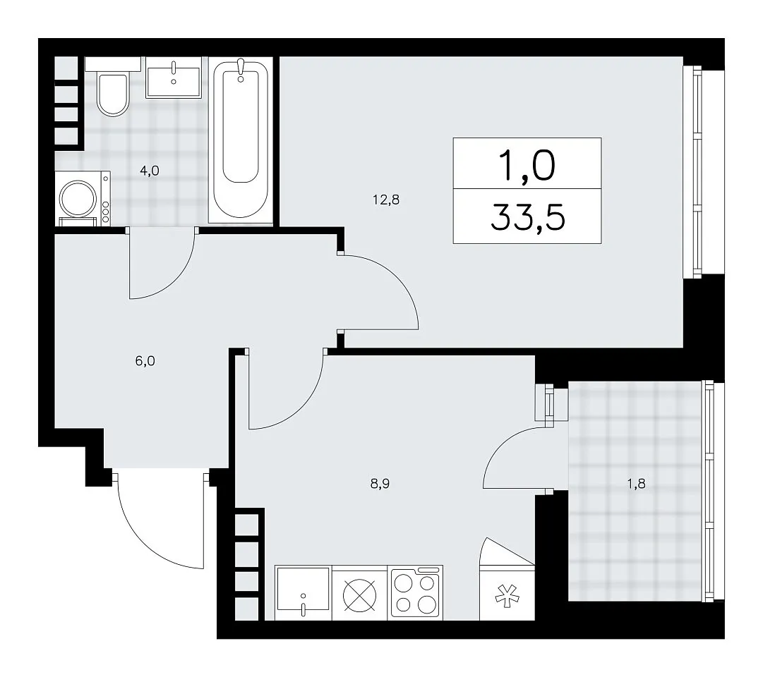 Количество комнат: 1, 33.5 кв.м.