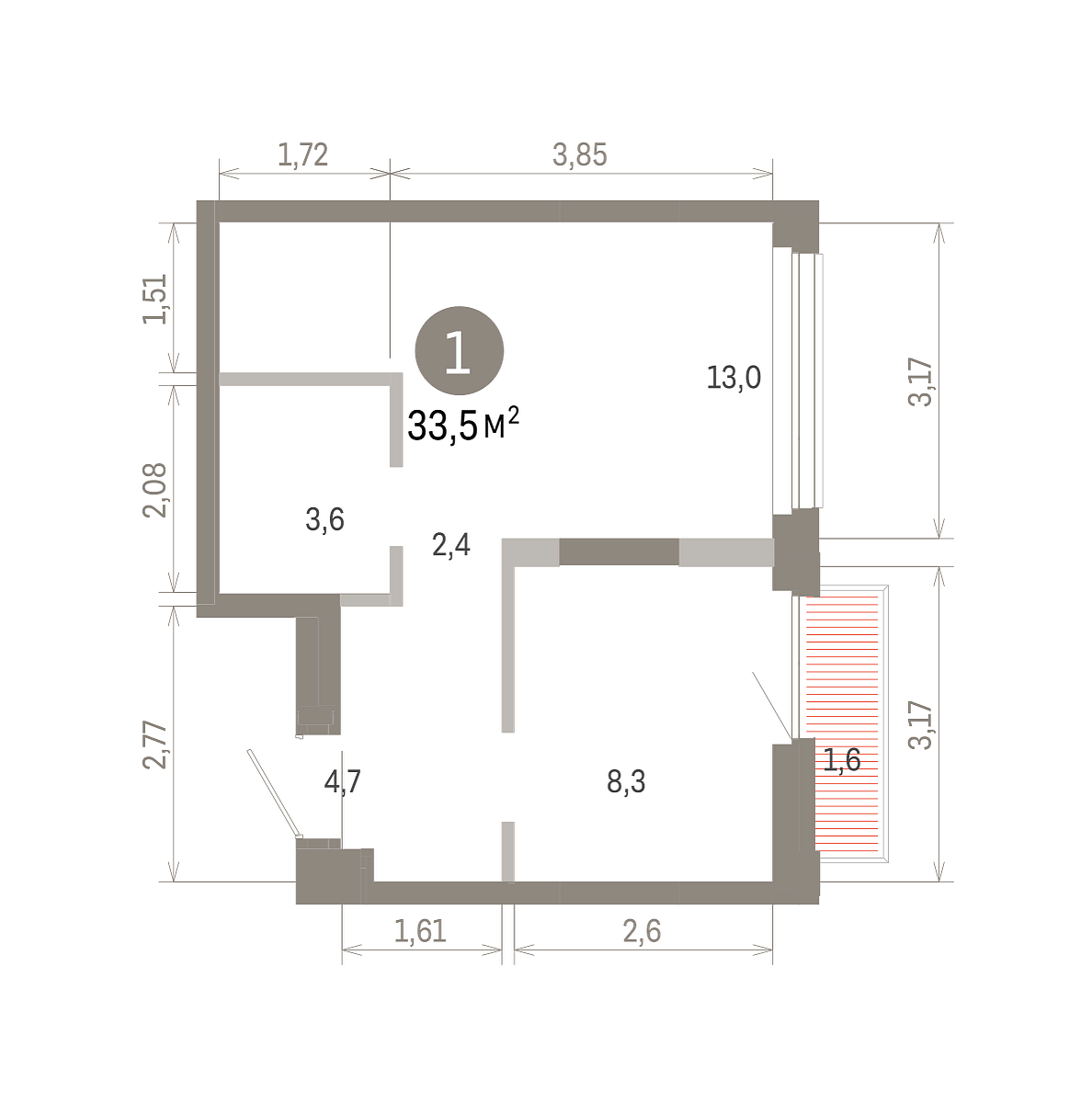 Площадь (общ/жил/кух), м2: 35.57/—/17.01
