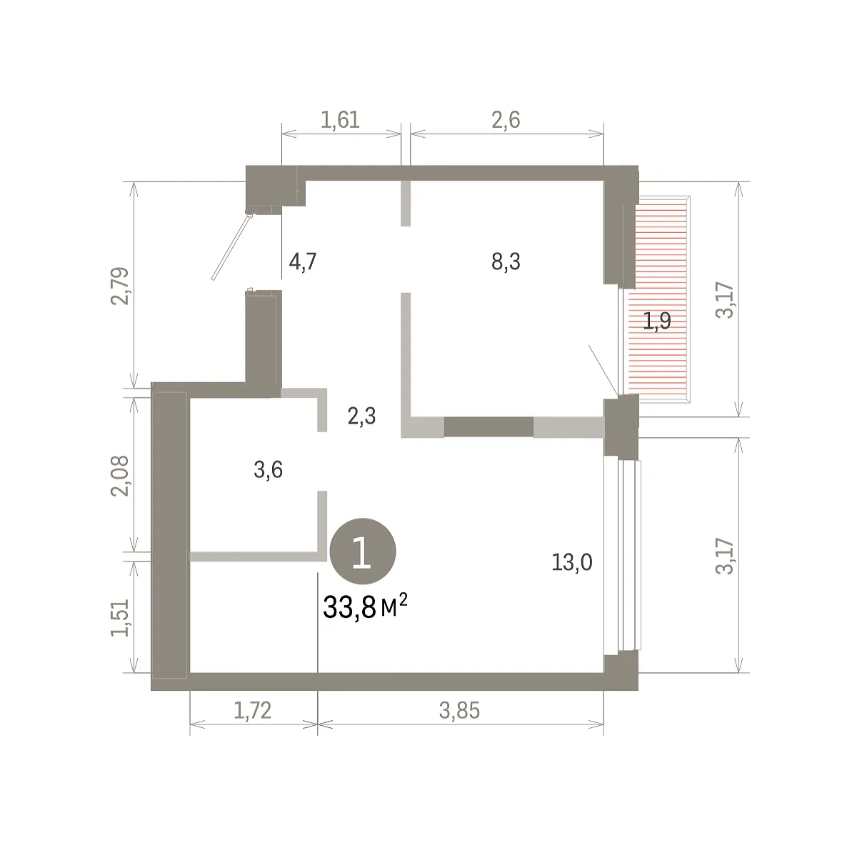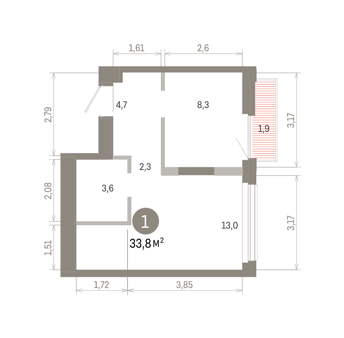 Площадь (общ/жил/кух), м2: 31.33/—/12.93