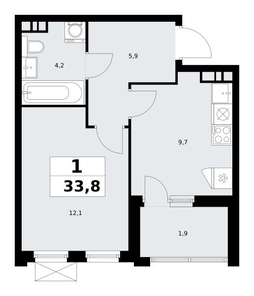 Площадь (общ/жил/кух), м2: 25.9/—/4.2