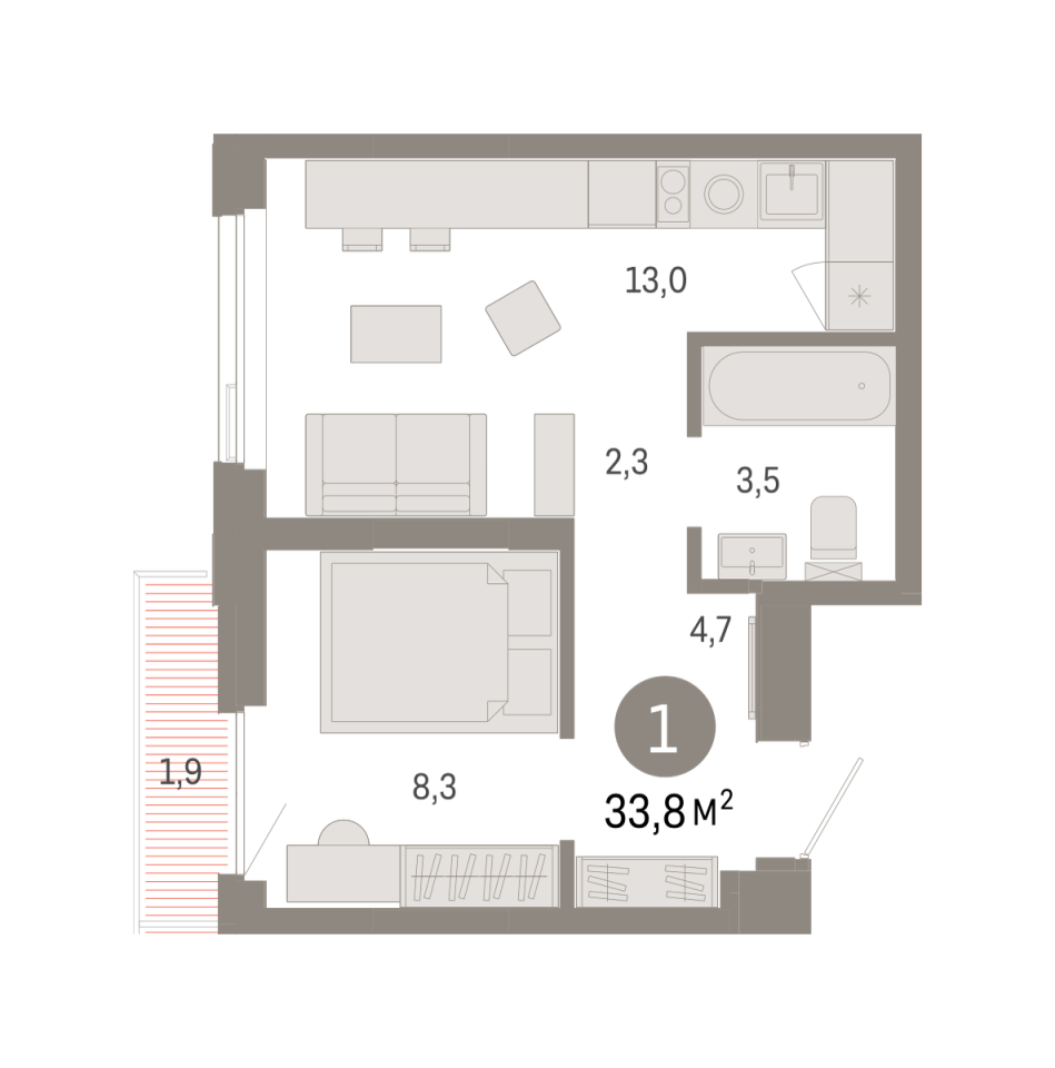 Площадь (общ/жил/кух), м2: 33.82/8.29/12.97