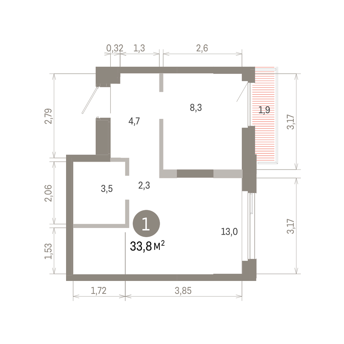 Площадь (общ/жил/кух), м2: 31.33/—/12.93