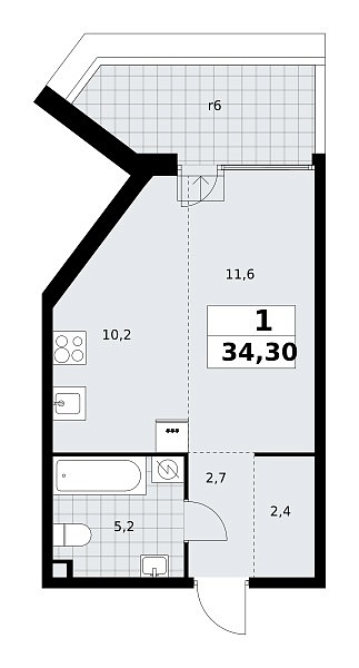 Количество комнат: 1, 34.3 кв.м.