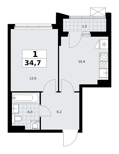 Количество комнат: 1, 34.7 кв.м.
