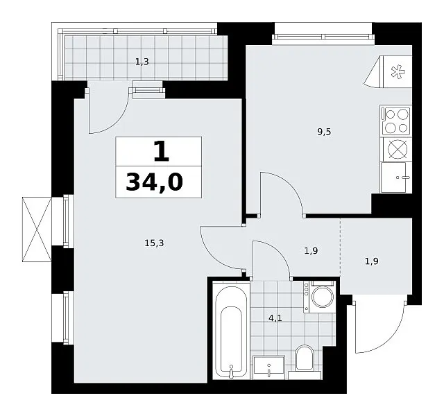 Площадь (общ/жил/кух), м2: 33.5/—/8.9