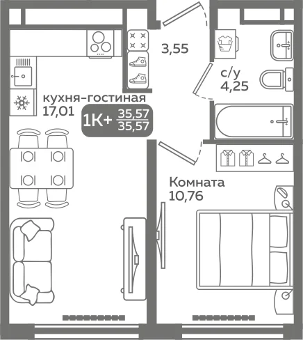 Общая площадь 35.57 м2