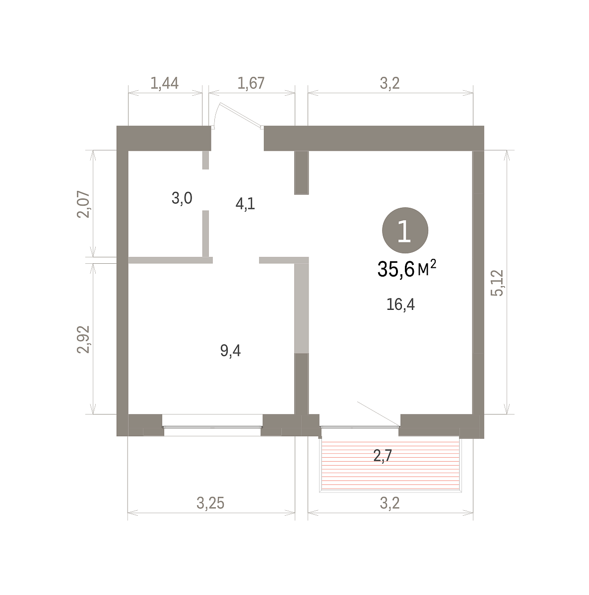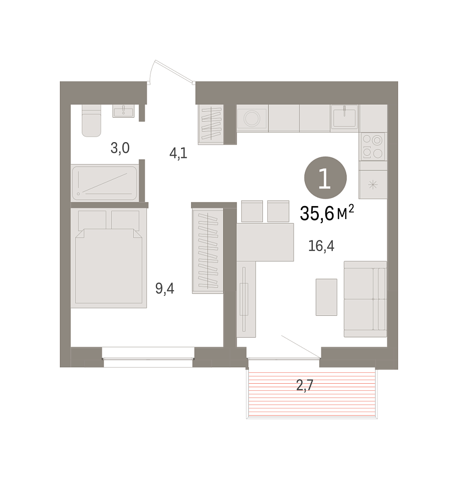 Площадь (общ/жил/кух), м2: 35.6/9.4/16.4